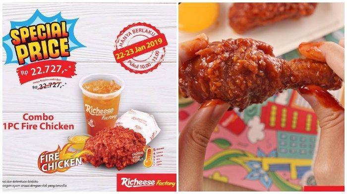 Promo Special Price Combo 1pc Fire Chicken bisa kamu nikmati dengan harga Rp 22 ribuan saja hemat Rp 10 ribu dibandingkan harga normal yaitu Rp 32 ribuan.