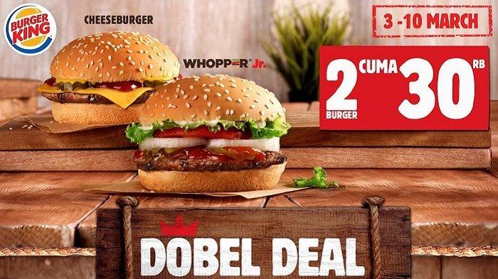 Dilansir dari akun Instagram resmi @burgerking.id, nikmati promo Double Deal Burger King yang berlaku mulai hari ini, Sabtu (3/2/2019) hingga 10 Maret 2019.