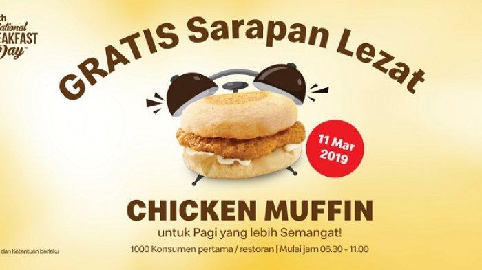 Ada 15 gerai menu Mc Donald's yang mengadakan promo sarapan gratis Chicken Muffin.