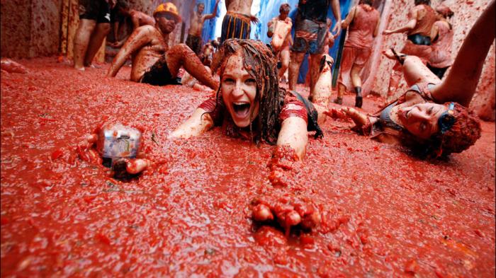 Festival ini diadakan di pusat kota yang diikuti oleh seluruh warga untuk melempar tomat ke semua orang.