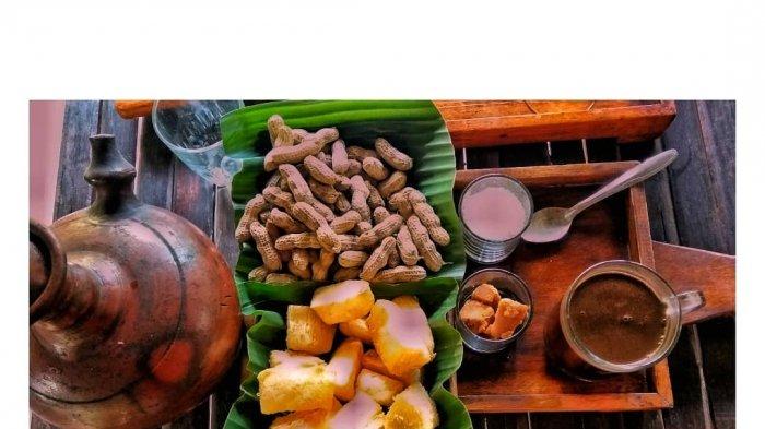 Paket sajian kopi Menoreh ini juga termasuk kacang rebus, lanting, dan jadah atau telo yang hanya dibanderol dengan harga Rp 10 ribu.