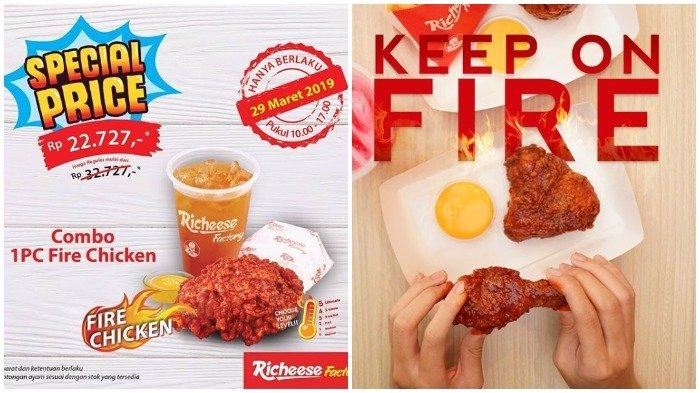 Richeese Factory hadirkan kembali promo 1 PC Combo Fire Chicken untuk besok, Jum'at (29/3/2019).