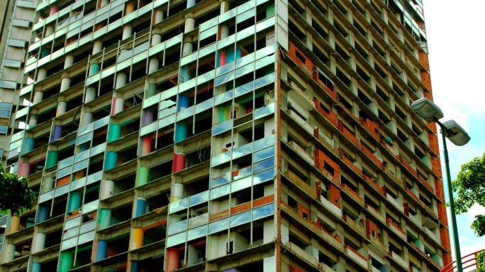 TRIBUNTRAVEL.COM - Tower of David adalah gedung pencakar langit yang belum selesai dan ditinggalkan di pusat Caracas, ibu kota Venezuela.