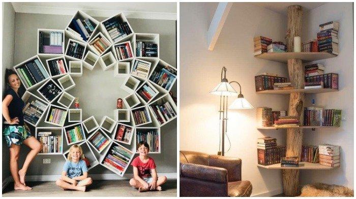 10. Membuat rak buku pohon dari kayu pohon sungguhan agar lebih menarik