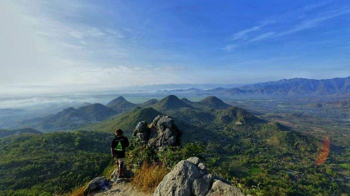 Puncak di bukit ini menawarkan keindahan pemandangan dengan lanskap yang memanjakan mata bagi para pengunjung yang berhasil mendaki ke puncaknya.