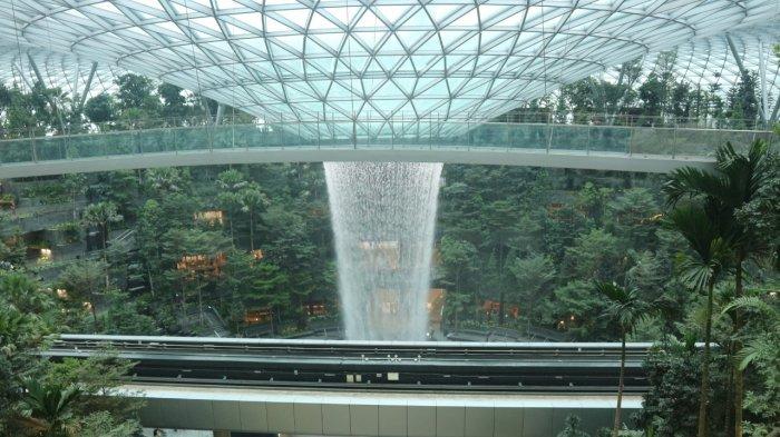 Satu keunikan dalam Jewel Changi Airport yang tak boleh dilewatkan adalah keberadaan air terjun buatannya.