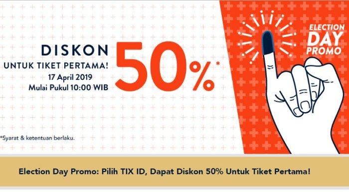 TRIBUNTRAVEL.COM - Memeriahkan Pemilihan Umum 2019, platform pemesanan tiket bioskop online TIX.ID memberikan promo menarik.