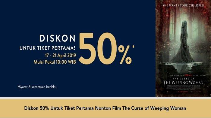 Diskon tiket 50 persen untuk film The Curse of Weeping Woman ini berlaku di bioskop XXI di seluruh Indonesia dengan melakukan pemesanan melalui Apps TIX.ID.