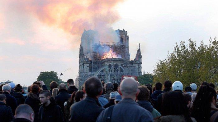 TRIBUNTRAVEL.COM - Gereja kuno sekaligus situs bersejarah Notre-Dame di Paris, Prancis, mengalami kebakaran pada Senin (15/4/2019) sore.