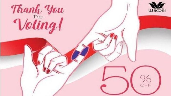 Merek pakaian dalam wanita, Wacoal memberikan diskon 50% untuk kamu yang sudah mencoblos di pemilu 2019.