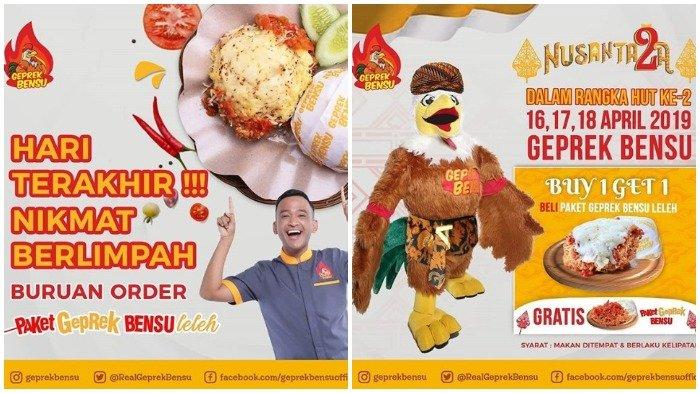 Menu yang dikenakan promo yakni Paket Geprek Bensu Leleh dan gratis Paket Geprek Bensu Original.