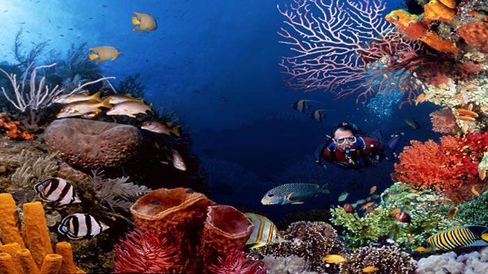 Terkenal dengan taman lautnya yang ditumbuhi beragam terumbu karang dan spesies biota lautnya.