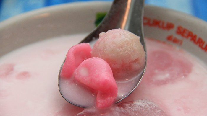 Minuman segar ini berisi bola-bola kecil yang terbuat dari tepung beras.