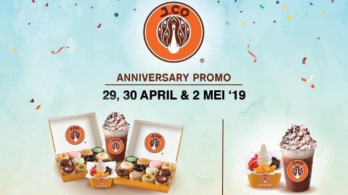 Diketahui bahwa Anniversary Promo dari J.CO akan mulai berlaku pada Senin (29/4/2019), Selasa (30/4/2019) dan Kamis (2/5/2019).