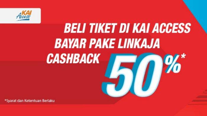 Promo yang diberikan oleh LinkAja adalah "Instant Cashback" hingga 50 persen untuk pembelian tiket kereta api baik kereta lokal maupun bukan.