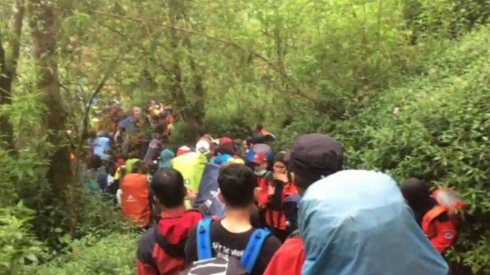 Dalam video tersebut tampak jalur pendakian yang penuh sesak oleh para pendaki.