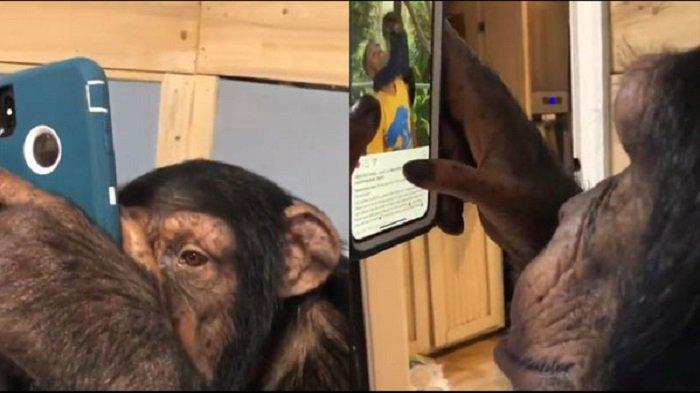 Dalam video tersebut, simpanse terlihat sedang menggulir postingan Instagram di ponsel pemiliknya.