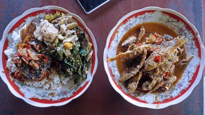 Ada masakan ikan Nila, Patin, Wader, sampai opor ayam, gudeg, dan rica-rica.