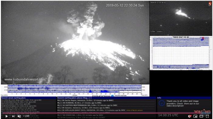 TRIBUNTRAVEL.COM - Gunung Agung di Karangasem, Bali dilaporkan kembali mengalami erupsi, pada Minggu (12/5/2019), sekitar pukul 22:29 WITA.