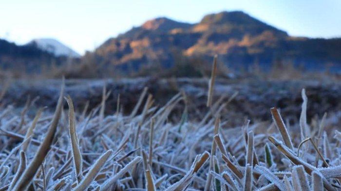 "Biasanya embun membeku saat 0 derajat, kebetulan tadi pagi minus, mungkin pukul 03.00 WIB atau 04.00 WIB suhunya di bawah 1 derajat celsius," ujar Aryadi.