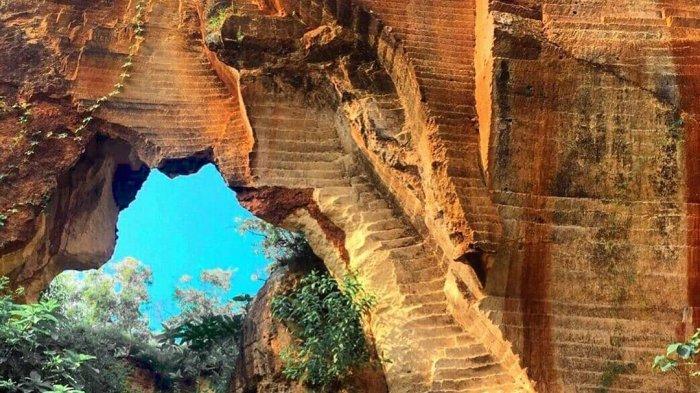 Bukit Kapur Arosbaya berada di Desa Berbeluk, Kecamatan Arosbaya, Bangkalan, Madura ini pada awalnya merupakan sebuah tambang kapur biasa dengan dinding sisa pahatan.
