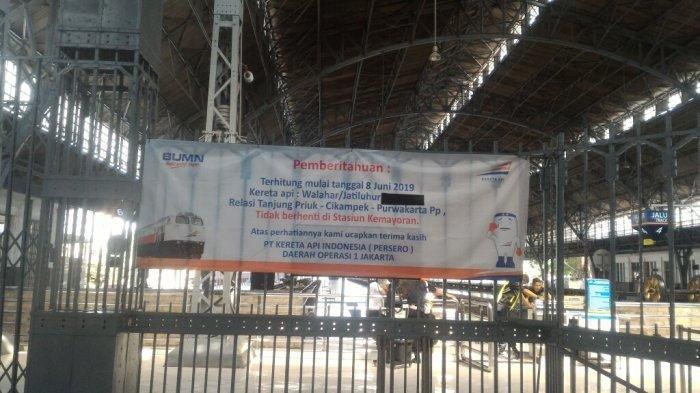 TRIBUNTRAVEL.COM - Mulai tanggal 8 Juni 2019 kemarin, kereta api Walahar dan Jatiluhur relasi Tanjung Priok, Cikampek dan Purwakarta tidak lagi lagi berhenti di Stasiun Kemayoran.