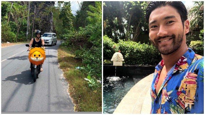 Siwon Suju di Bali tampak santai dengan mengenakan singlet hitam, naik motor sambil berkeliling Pulau Dewata.
