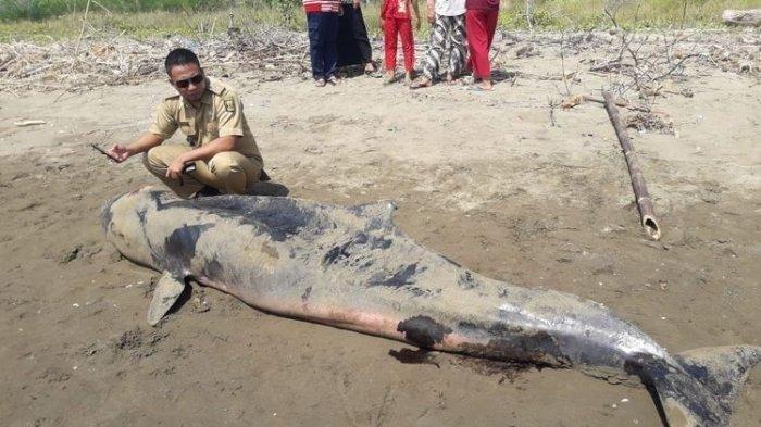 Dia mengatakan beberapa warga sempat menggotong paus ke pinggiran pantai. Lalu dilakukan pengukuran yang hasilnya diperkirakan panjang mencapai tiga meter dengan berat sekitar 200 kilogram.