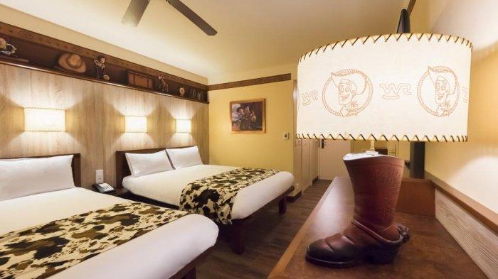 Kamu pun busa menemukan kamar-kamar bertema Toy Story lengkap dengan fasilitas AC, USB, dan TV layar datar dengan saluran Disney.