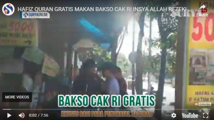 TRIBUNTRAVEL.COM - Bakso Cak Ri memberi porsi bakso lontong gratis untuk konsumen yang hafal Al Quran.
