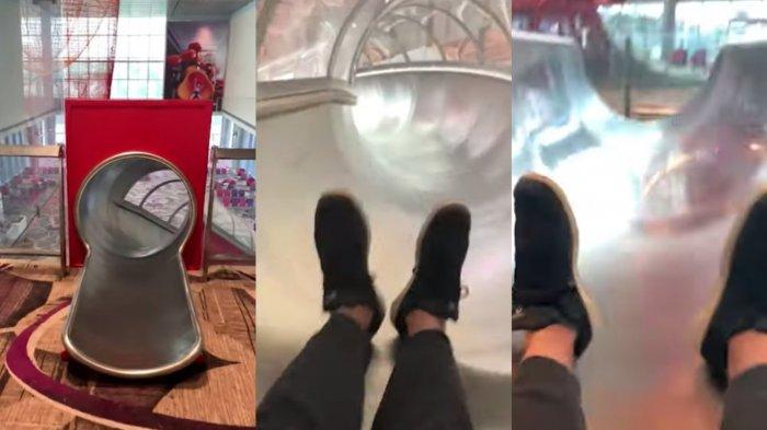 Dalam video Yusuf El Askary, setelah ia melakukan scan boarding pass, dia langsung menuju tempat masuk seluncuran.