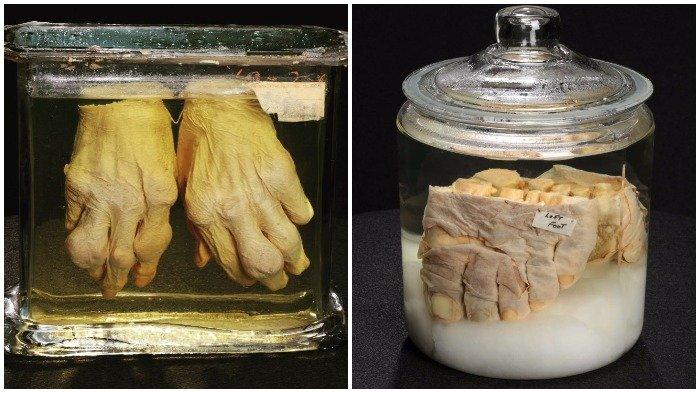 Spesimen basah yang disimpan merupakan bagian tubuh manusia yang berasal dari sumbangan.