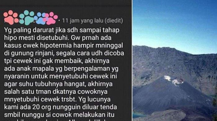 TRIBUNTRAVEL.COM - Postingan tanggapan kasus pendaki gunung Rinjani disetubuhi saat hipotermia viral di media sosial.