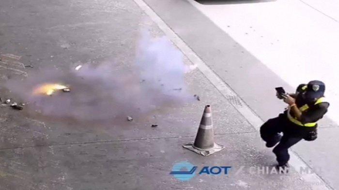 TRIBUNTRAVEL.COM - Bandara Internasional Chiang Mai, Thailand menggunakan rekaman CCTV yang memperlihatkan turis terbakar akibat ledakan power bank.