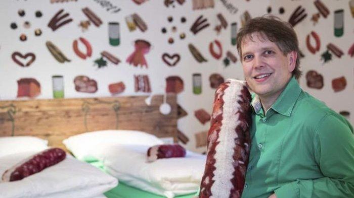 Namun, bagaimana kalau interior hotel yang taveler inapi dipenuhi oleh wallpaper bergambar sosis atau guling berwujud bratwurst?