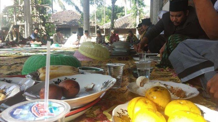 Usai memanjatkan doa, jemaah laki-laki akan langsung menyantap hidangan yang telah disajikan diatas dulang.