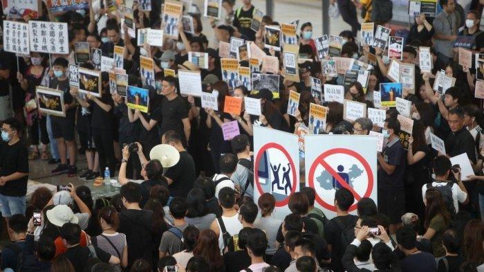 TRIBUNTRAVEL.COM - Ribuan pengunjuk rasa memadati area Hong Kong'>Bandara Hong Kong, pada Senin (12/8/2019).