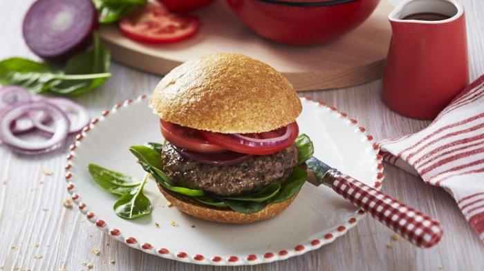 Kiwi burger terdiri dari roti panggang dengan tambahan patty daging sapi yang berair, telur goreng, bit, tomat, selada, keju, mustard, dan saus tomat.