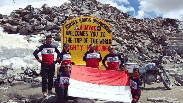 Darius Sinathrya dan Donna Agnesia yang bermotor bersama tim Himalayan Ridge berhasil mencapai Khardung La Pass.