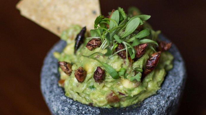 Makanan alpukat dari restoran asal Meksiko Santo Remedio disajikan dengan belalang.