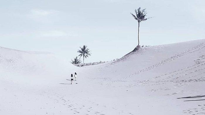 Di sini kamu akan dimanjakan dengan hamparan pasir yang sangat luas seakan-akan kamu sedang berada di padang gurun ala Timur Tengah.