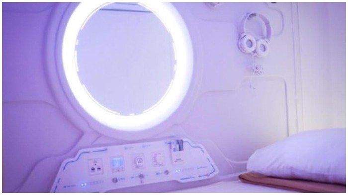 Kamu akan tidur dalam kapsul dengan fasilitas yang diberikan berupa kamar ber-AC, televisi, meja tulis mini, dan air minum dalam kemasan.