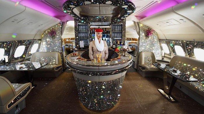 TRIBUNTRAVEL.COM - Beberapa waktu yang lalu, maskapai penerbangan Emirates mengunggah foto bar pesawat berlapis berlian.