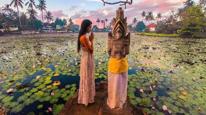 Selain menikmati bunga teratai, ada juga pura di pinggir kolam yang akan menambah daya tarik wisatawan datang ke Lotus Lagoon.