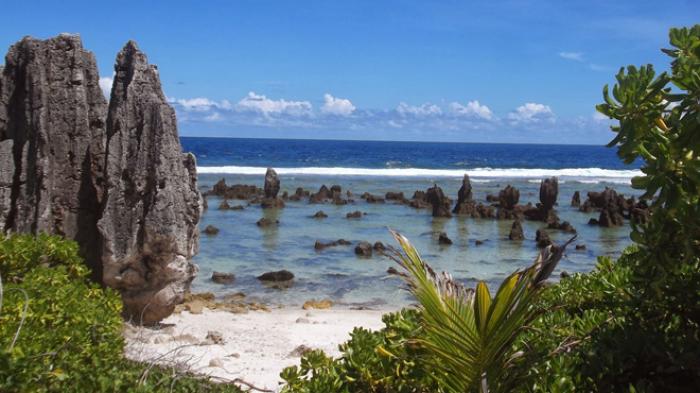 Nauru digambarkan sebagai “tanah tandus batu bergerigi,” yang penuh kanal batu, batuan karang, dan menara batu kapur.