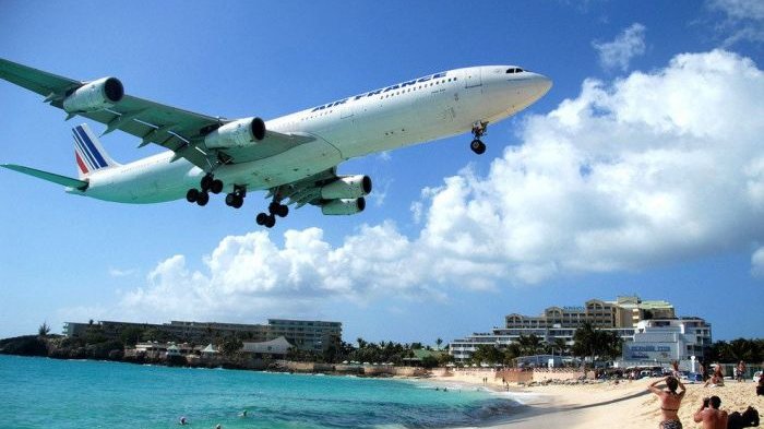 Bandara Internasional Princess Juliana ini terkenal karena lokasinya yang sangat dekat dengan pantai.
