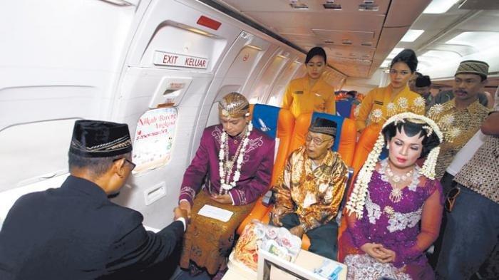 Mungkin hanya di Indonesia, ada kejadian menikah di dalam pesawat.
