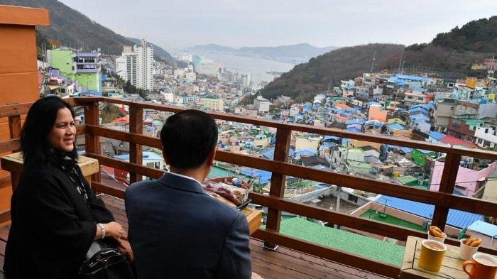 TRIBUNTRAVEL.COM - Di sela kunjungan kerjanya di Busan, Korea Selatan, Presiden Joko Widodo dan Iriana mengunjungi Desa Budaya Gamcheon pada hari Minggu (24/11/2019)