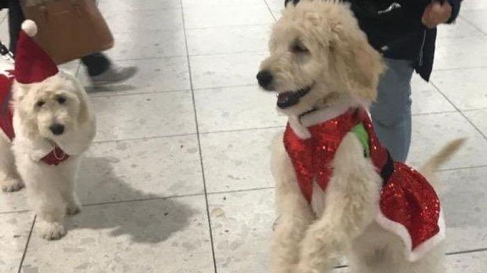TRIBUNTRAVEL.COM - Anak-anak anjing menggunakan topi Santa dan pakaian Natal mencerahkan hari-hari para pelancong yang baru saja tiba di Irlandia.
