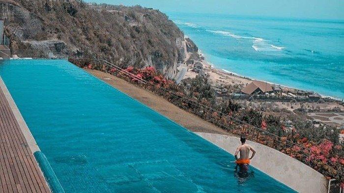 Menariknya lagi, dari deretan penginapan mewah Bali yang ia kunjungi ada satu yang beratap kolam renang.